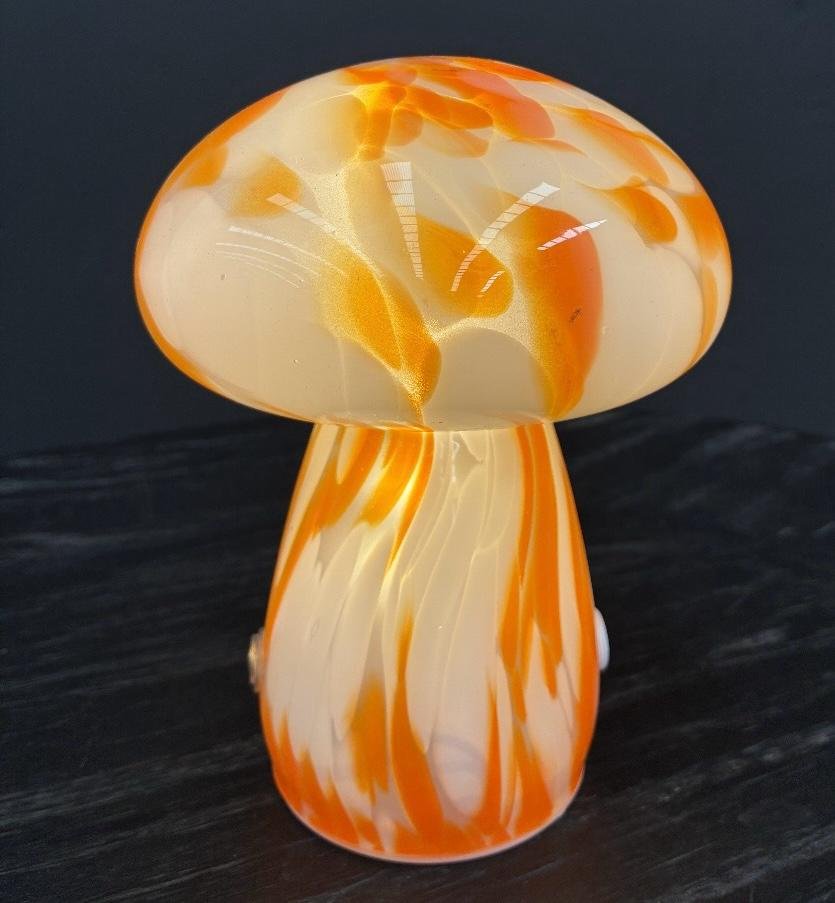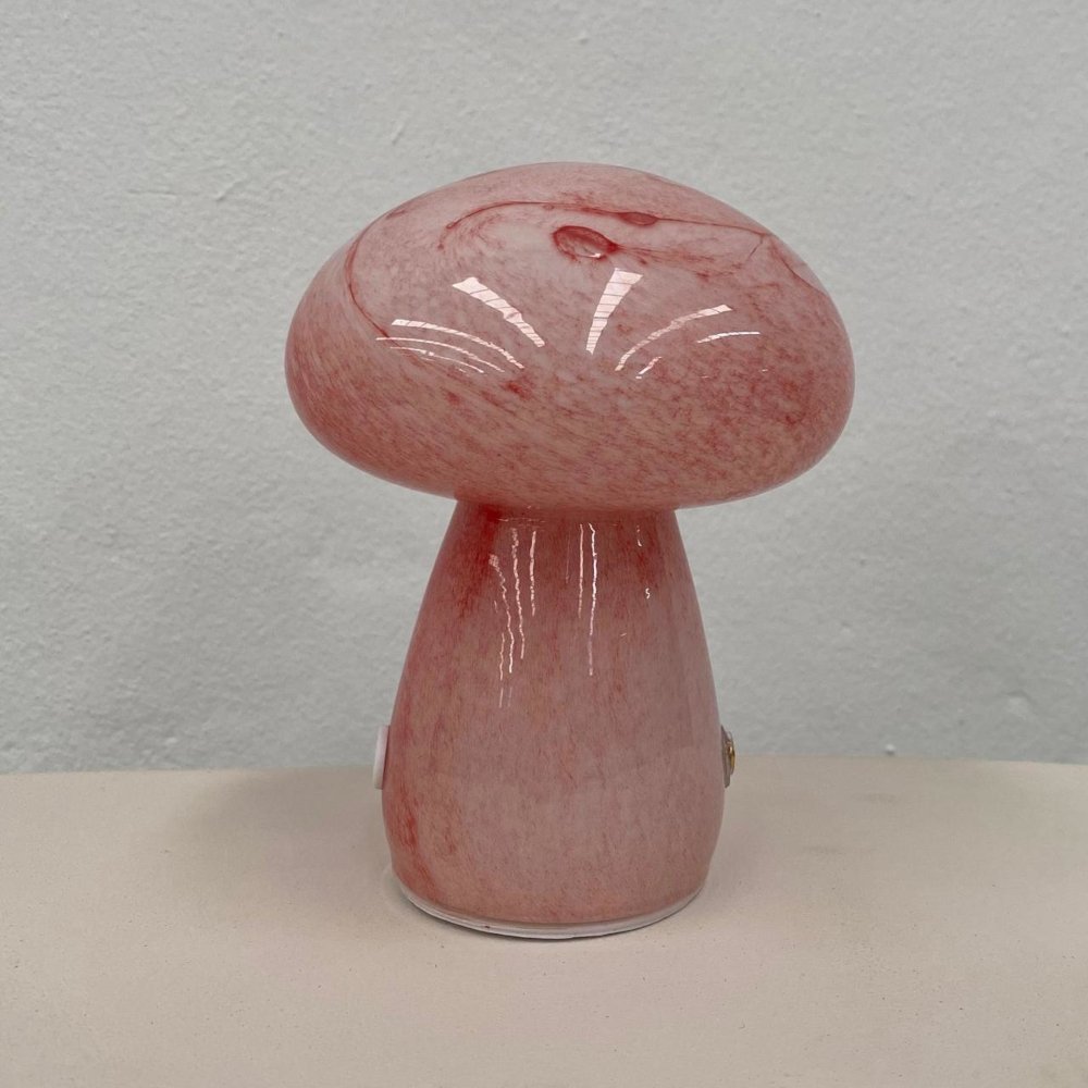 Lámpara forma Hongo led con carga USB de vidrio en 2 colores: Coral y Orange.