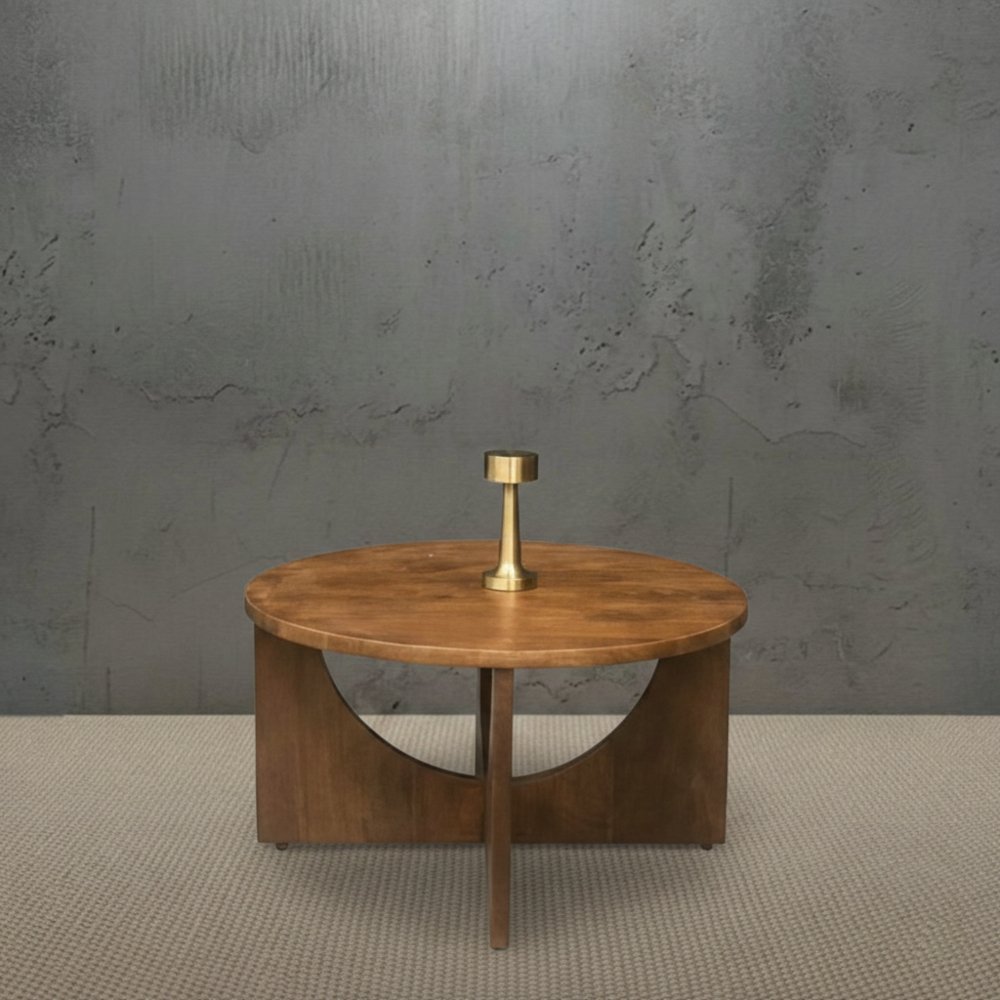 Mesa circular de madera de mango maciza color walnut.