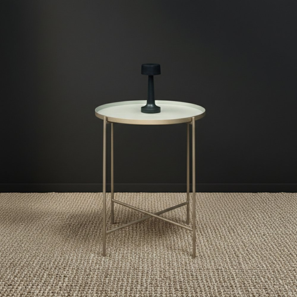 Mesa circular metálica dorada y tapa color verde pistacho mate 2 medidas: