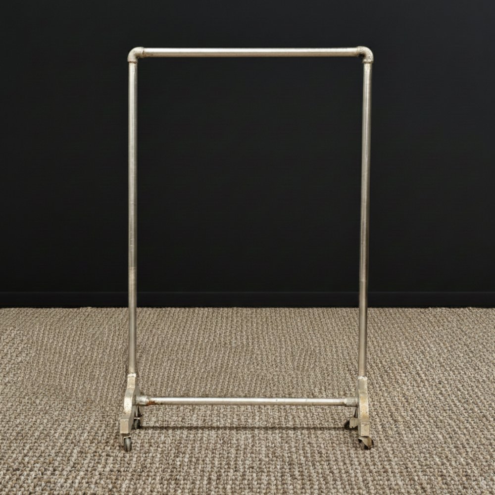 Perchero con estructura de caño tubular cromada y base con ruedas
