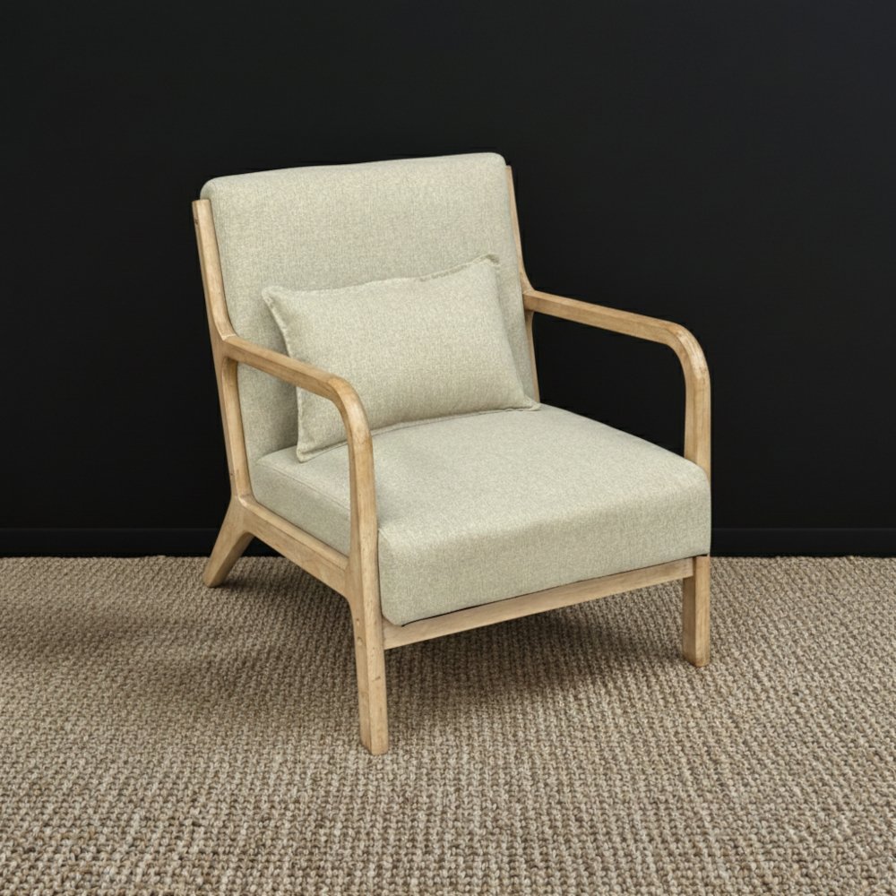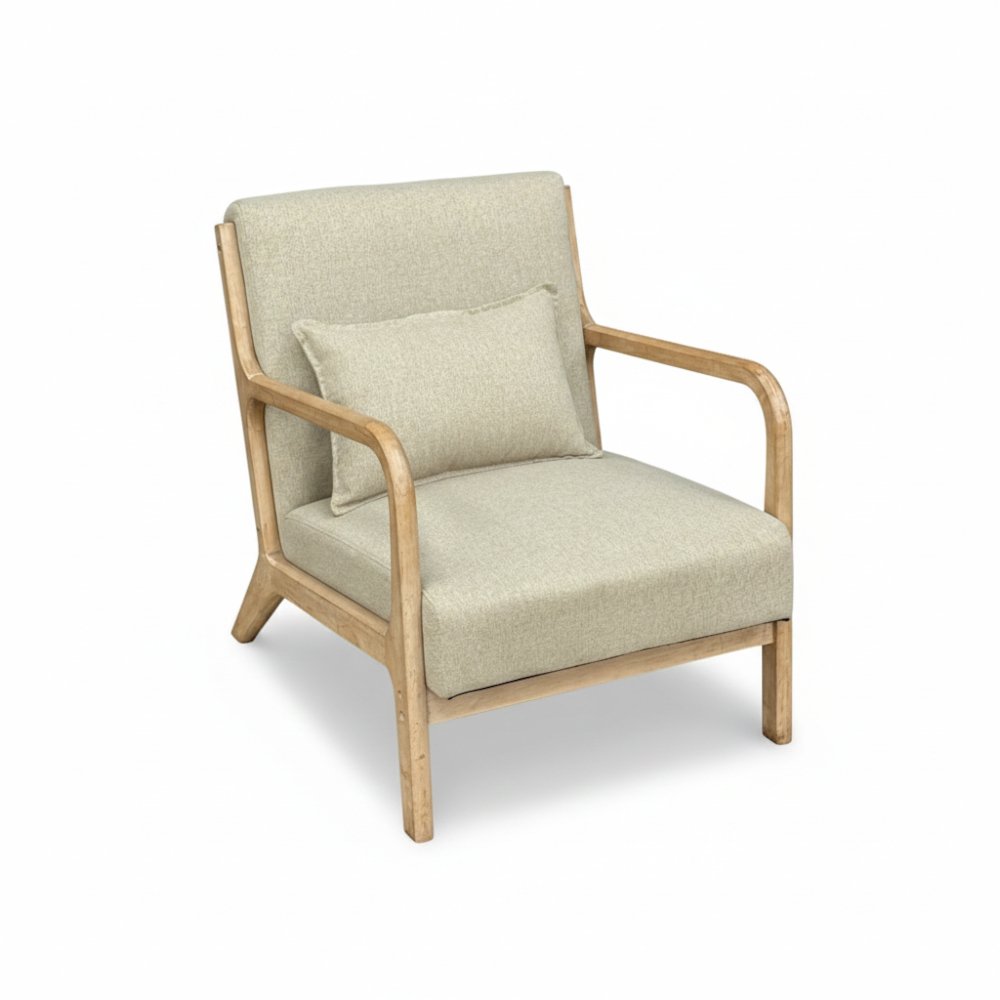 Sillón de 1 cuerpo de madera y tela lino rustico color piedra.
