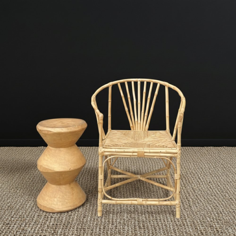 Sillón de 1 cuerpo estrucutura de caña con asiento de mimbre.