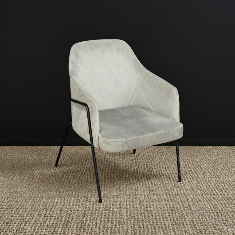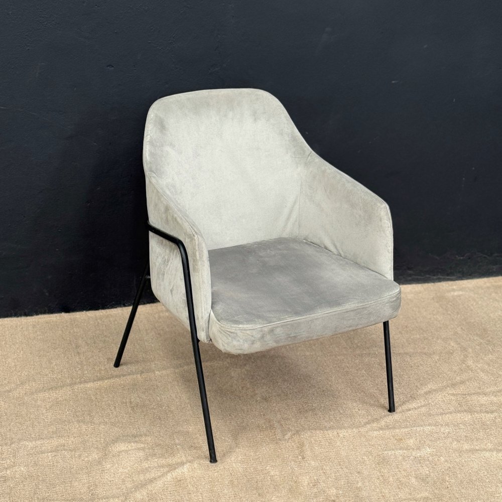 Sillón de 1 cuerpo tapizado pana gris y estructura de hierro negra.