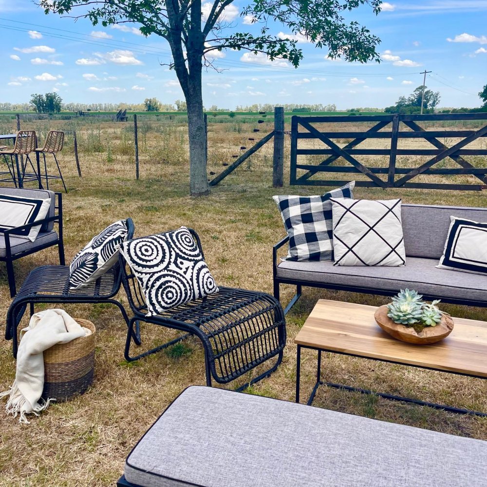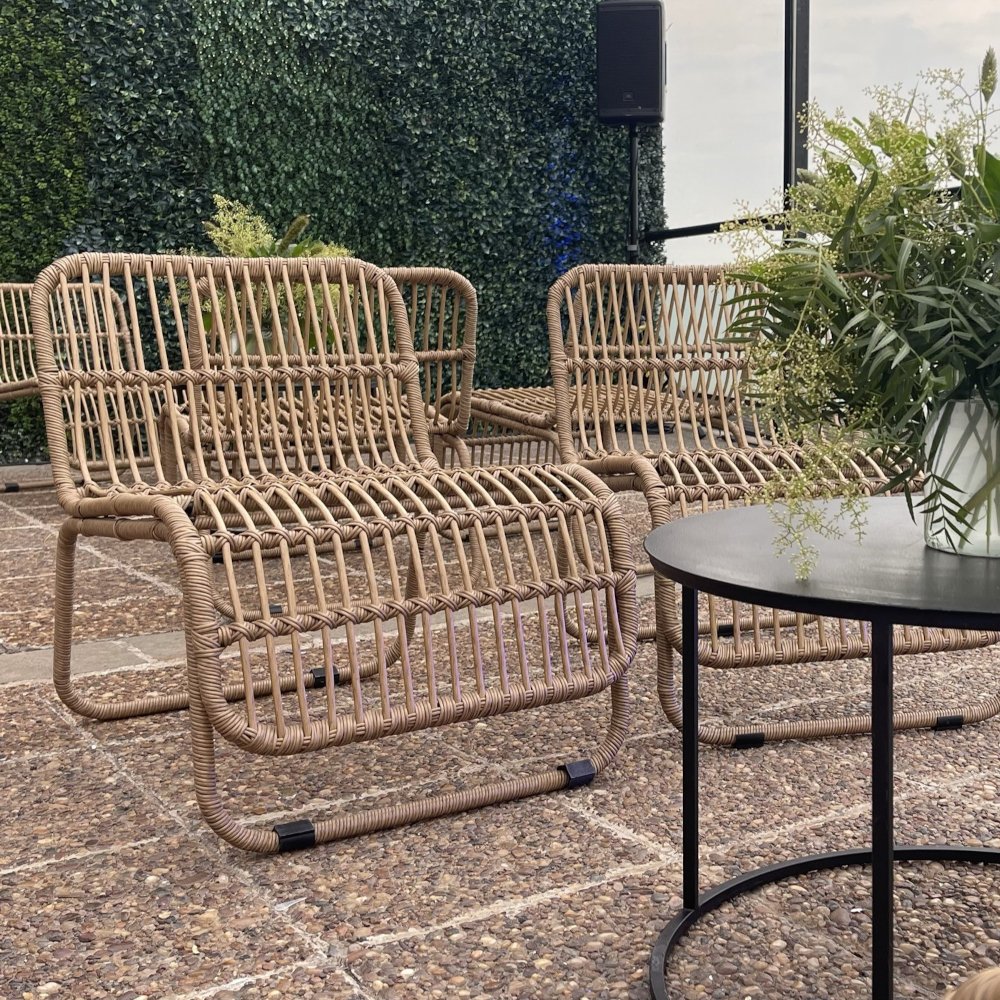 Sillón de 1 cuerpo estructura de hierro envuelto en hilado símil rattan en 2 colores.